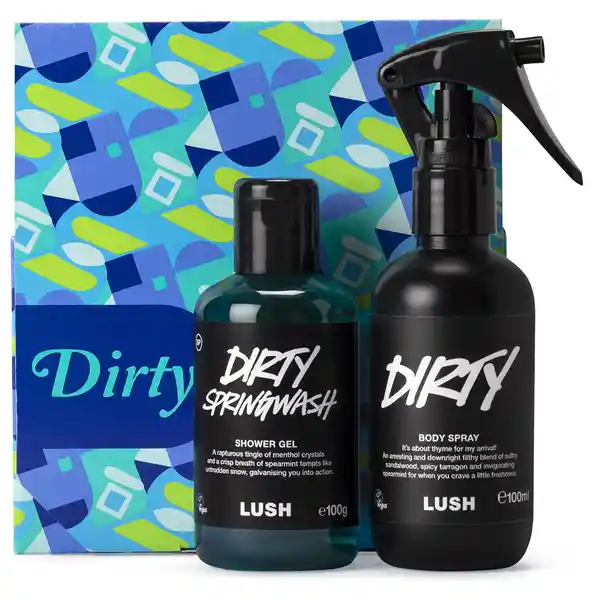 Contenido 2 Unidades: Dirty Springwash Gel de Ducha 100 g + Dirty Spray Corporal 100 ml. Descubre Dos Refrescantes y Mentoladas Maravillas Para Sorprender a Esa Personal Especial a la Que le Gusta Oler Genial. En Este Regalo Encontrarás Dos Clásicos Dirty: El Gel de Ducha y el Spray Corporal. Este Aroma Emblemático de Lush Sin Duda Hace el Trabajo Sucio. ¿Quieres Verlo Más Claro? no te Pierdas Este Vídeo. Modo de Uso: Gel de Ducha: Extiende Por el Cuerpo Enjabona y Enjuaga. Spray Corporal: Rocía Por el Cuerpo. ¿De Qué Está Hecho Este Regalo Ético? Cartón 100% Reciclado y Reciclable¿Cómo Almacenar? Guarda Los Productos de Este Regalo Hechos Con Ingredientes Sostenibles en un Lugar Fresco y Seco. Es Mejor Usar Los Productos Frescos.