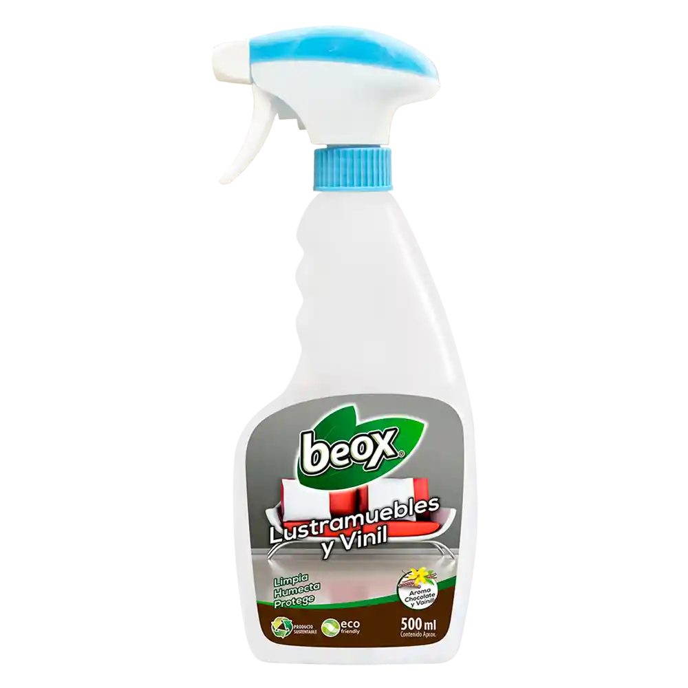 Formulado para limpiar, renovar y dar brillo, al crear una capa brillante, transparente y protectora, renovando al instante las superficies tratadas. Modo de uso: Agite bien antes de usar. Aplique sobre un paño de microfibra Beox® y en la superficie a limpiar, esparza uniformemente el producto sobre toda la superficie y luego secar con un paño. Una vez aplicado las superficies quedan secas, brillantes y con un agradable aroma. LIMPIEZA Y BRILLO EN SECO NO ES GRASO. Importante: Puede realizar una prueba de cualquier material para asegurarse que no destiñe. Precauciones: No inhalar, ni ingerir. Mantener fuera del alcance de los niños y mascotas. Usar alejado de los alimentos. No comer, beber ni fumar durante su manipulación. Lave sus manos después de utilizar el producto. Conservar en su envase original. Composición Química: Agua desmineralizada, Cera Montanica (Agente de brillo), Sempure (Agente de Brillo), Glycereth-6 Cocoate (Agente derivado de plantas), Citrato de sodio (ablandador de agua derivado de plantas), Trietanolamina (Componente sintetico) , Componente de fragancia aceite cacao perfume ,Benzisotiazolinona (conservante sintético) Metilotiazolinona (conservante sintético). PRODUCTO 100% CHILENO.