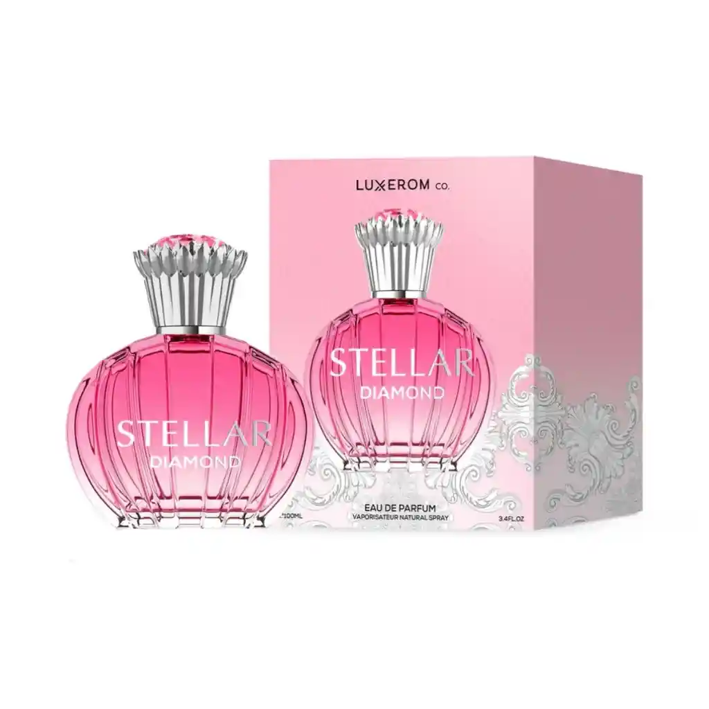 Luxerom Stellar Diamond es un perfume EDP (Eau de Parfum) dirigido al público femenino. Evoca la elegancia, la sofisticación y el brillo de un diamante. Notas Principales: Notas de Salida: Mandarina, Pera, Bergamota Notas de Corazón: Absoluto de Jazmín, Absoluto de Iris, Absoluto de Ylang-Ylang Notas de Fondo: Ámbar, Vainilla, Almizcle Este perfume transmite una fragancia elegante, sofisticada y duradera, que destaca por su intensidad y persistencia. Es el complemento perfecto para ocasiones especiales y eventos importantes, donde se desea transmitir una imagen de feminidad y exclusividad.