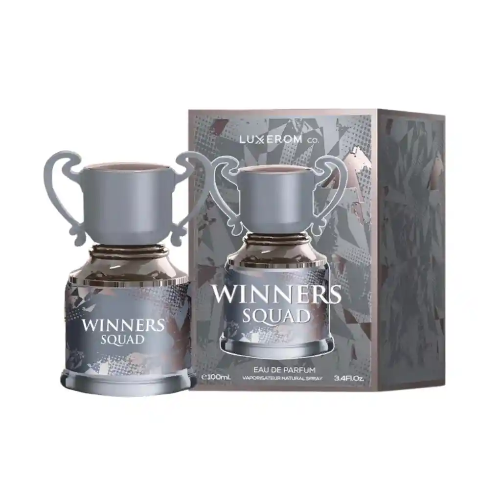 Luxerom Winners Squad es un perfume EDP (Eau de Parfum) dirigido al público masculino. Evoca la confianza, la determinación y el liderazgo. Notas Principales: Notas de Salida: Bergamota, Limón, Pimienta Negra Notas de Corazón: Absoluto de Madera de Cedro, Absoluto de Espliego, Absoluto de Salvia Notas de Fondo: Ámbar, Vainilla, Almizcle Este perfume transmite una fragancia poderosa, vibrante y llena de carácter, que evoca la confianza y el espíritu de triunfo. Su composición única y duradera lo convierte en un complemento perfecto para aquellos hombres que buscan una fragancia que refleje su mentalidad ganadora y su estilo de liderazgo.