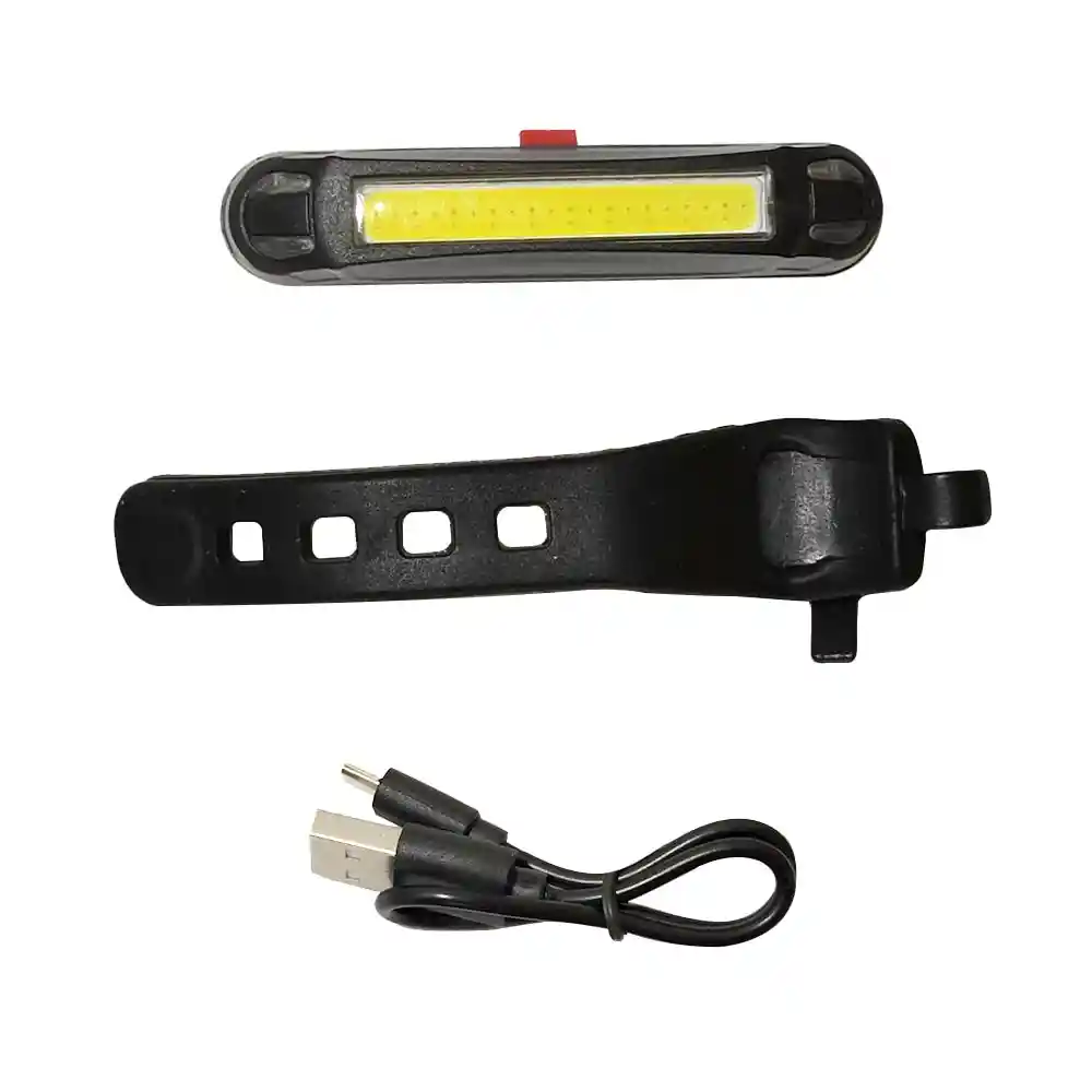 Características -Luz pequeña, ligera y fácil de llevar, portátil para montar, ciclismo y más. -Con broche de silicona antideslizante, fácil de instalar, sin daños en el cuerpo. -Alto brillo, bajo consumo de energía, y protección del medio ambiente. -Luz impermeable -Material: plástico + silicona. -Fuente de luz: COB + LED. -Color: luz blanca-luz roja O luz roja-luz azul Modo de iluminación: Normal/lento/secuencial/rápido. Batería: batería recargable integrada de 500mAH. 100 LÚMENES