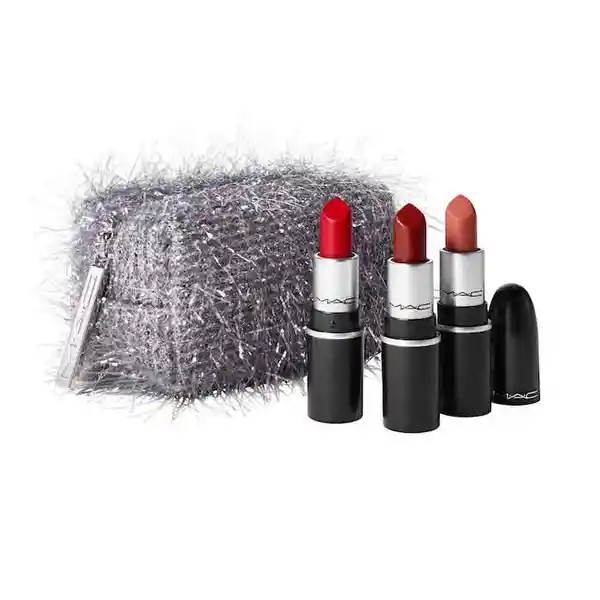 Un pequeño regalo para las fiestas que contiene una gran sorpresa! Un trío de tonos de Lipsctick / Mini M·A·C de edición limitada. Podrás elegir entre dos variantes: • Pink: Trio de tonos rosa o Snow Boundaries- Rosa calido palido (Lustre) o Beaujolais Slay- Rosa frio profundo (Matte) o Igloo’dTo You- violeta Frosty (Frost) o Porta cosméticos rosa • Red: Trio de tonos rojos o Rocket Woman- Rojo sangre (Lustre) o Boisterous- Rosa rojizo vibrante (Matte) o Burst On The Scene- Marroncito rosa suave (Matte) o Porta cosméticos plateado Este kit tiene un 30% Off vs la compra de productos por separado.
