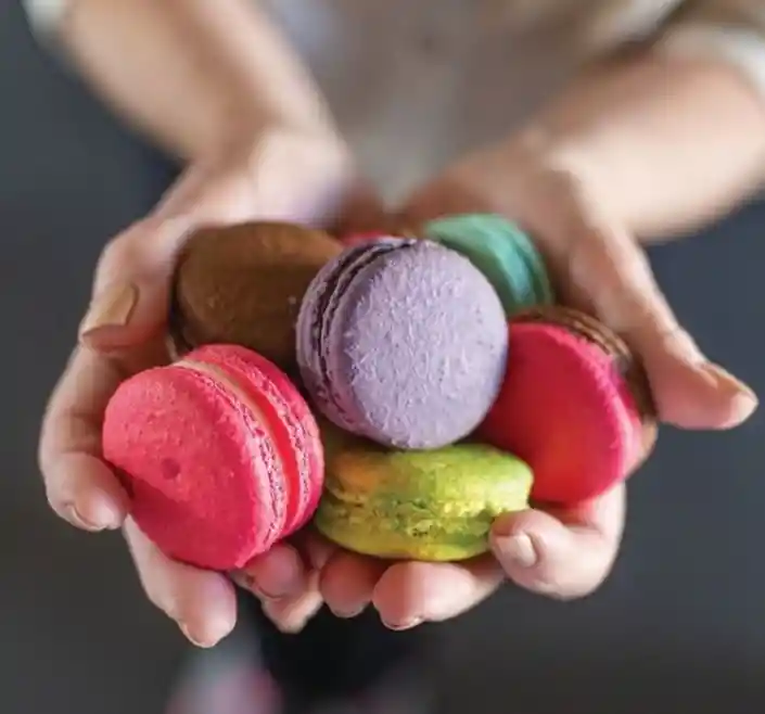 Es un tipo de galleta tradicional de la Gastronomía de Francia e Italia, hecha de clara de huevo, almendra molida, azúcar flor y azúcar y una crema o ganache entre dos de ellas. 20g