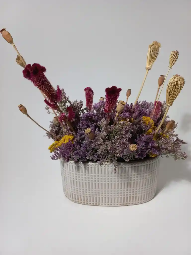 Maceta Cerámica Con Flores Secas 1