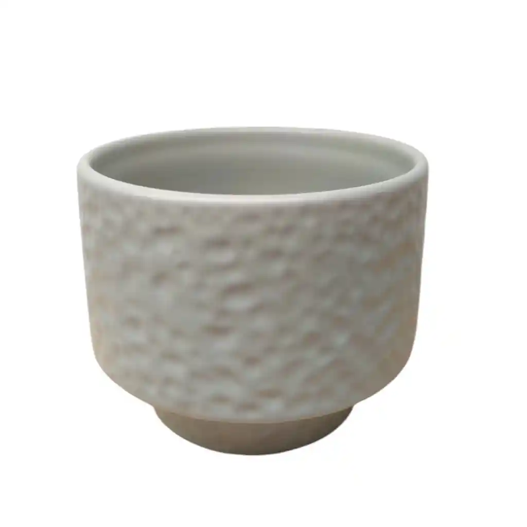 Añade un toque de estilo artesanal y moderno a tu hogar con esta versátil maceta de cerámica blanca. Su distintiva textura en relieve aporta una profundidad visual y un acabado sofisticado que captura la luz de manera única. Esta pieza es ideal para dar un realce sutil a tus plantas de interior en cualquier espacio, integrándose perfectamente en estilos minimalistas o rústicos modernos.