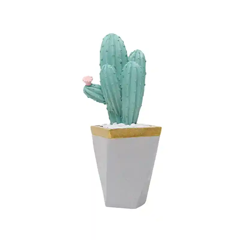 Macetero Cuadrado Cactus Bajo Flor Rosada