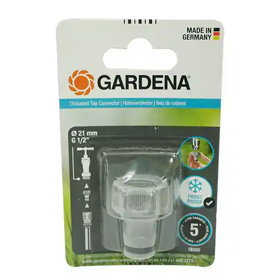 Conector plástico para grifo, debido a su exclusivo diseño Gardena facilita la conexión de cualquier accesorio de riego.