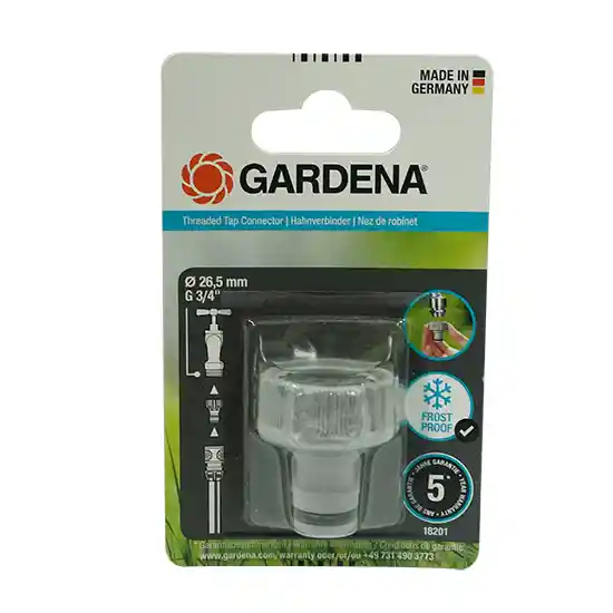 Conector plástico para grifo, debido a su exclusivo diseño Gardena facilita la conexión de cualquier accesorio de riego.