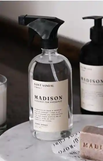 · Uso: Ambiental y textil · Tamaño: 500 ml Spray ambiental de intenso aroma y excelente fijación para ambientes, linos y telas. Puedes utilizarlo en cualquier rincón de tu casa, en la ropa de cama, cortinas y sillones. ¡Verás que rico queda en textiles! Precaución: · Mantener fuera del alcance de niños. · Líquido compuesto de fragancia y alcohol. Evite dejarlo caer sobre muebles o superficies, ya que puede dañarlas. SAINT SANDAL Terra Fragancia en base a Sándalo. Aroma sensual. Llega a lo más profundo del sentimiento con ese toque exótico de la madera.