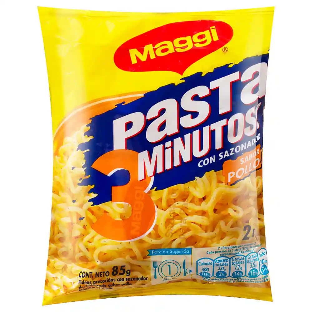 Fideos precocidos con sazonador deshidratado sabor a pollo, ideal para los momentos en que no cuentas con tiempo para realizar otras preparaciones, contiene 85 gramos. packing: Bolsa