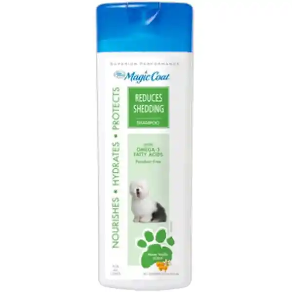 Mucho Pelo Por Toda la Casa? si a tu Mascota se le Cae Excesivamente el Pelaje el Shampoo Para Perro de Magic Coat Tiene la Solución. Está Especialmente Formulado Con el Beneficio Añadido de Ácido Graso Omega 3 Para Reducir la Caída Excesiva de Pelo y Promover un Pelaje Saludable y Que Lucirá Espectacular. Olvídate de Ver tu Hogar Lleno de Pelos Con Nuestro Shampoo Reducción de Caída. Beneficios: Reduce la Caída Excesiva Del Pelo. Libre de Parabenos. Hidrata y Protege. Aroma Duradero a Miel y Vainilla.
