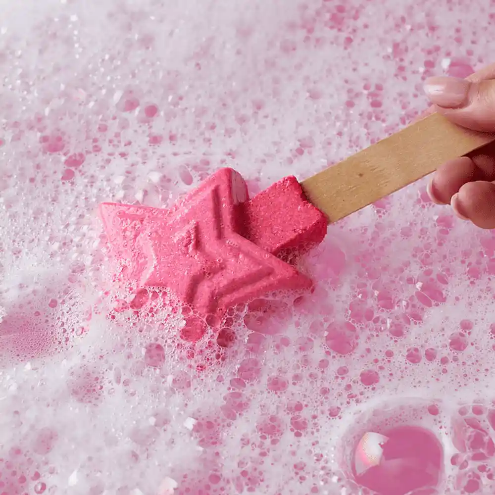 Magic Wand es una burbuja de baño reutilizable con aroma a algodón de azúcar y aceite de lima persa. ¡Haz espuma como por arte de magia!