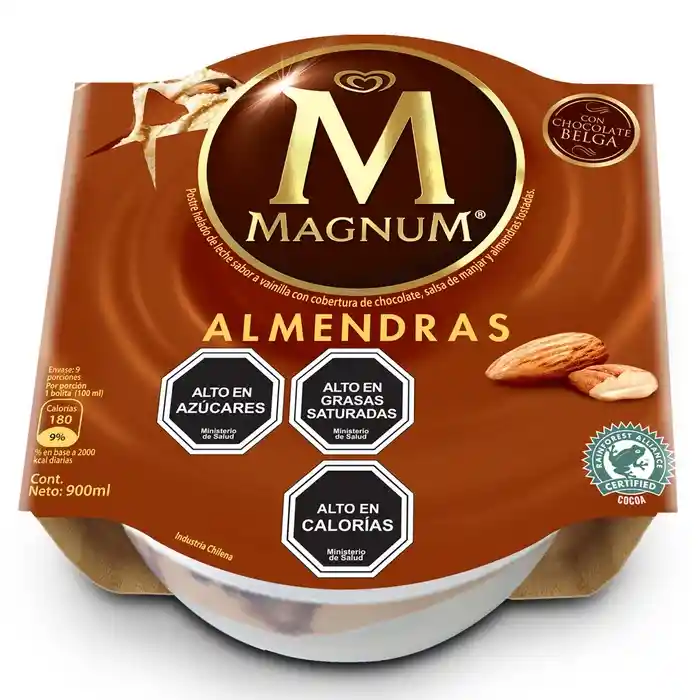 Magnum Helado Sabor Vainilla con cobertura de chocolate y Almendras 900 ml