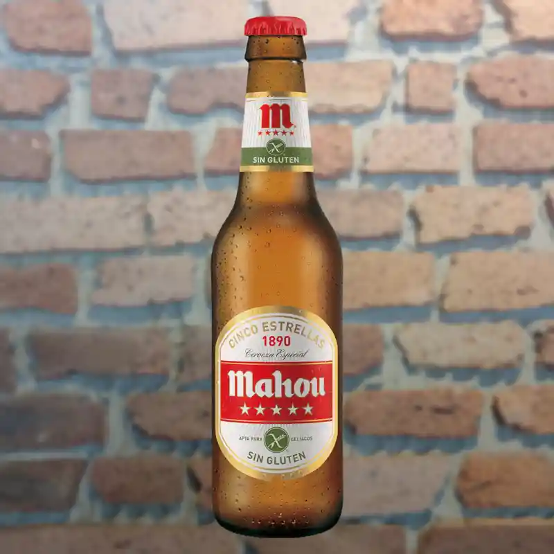 Mahou Cinco Estrellas Sin Gluten nace como la cerveza apta para celiacos que mantiene intacto el sabor de su hermana Mahou Cinco Estrellas. Con un color dorado brillante, destaca por ser cremosa y consistente, con un cuerpo intenso y equilibrado capaz de satisfacer a los paladares más exigentes. Con el mismo sabor que la Mahou Cinco Estrellas, la nueva Mahou Sin Gluten mantiene los rasgos y procesos de elaboración característicos de su hermana mayor que nos acompaña desde 1969. Utilizando las mejores variedades de lúpulo y levadura se obtiene esta cerveza dorada, cremosa, con un aroma afrutado y apta para celiacos. Consíguela al mismo precio en tu punto de venta habitual y disfrútala tanto en tu bar favorito como en tu casa, dejándote llevar por su sabor de Cinco Estrellas para todos. Inscrita en la Fundación Convivir de Chile. ABV: 5.5% / Estilo: International Pale Lager sin Gluten / Formato: Botella 330 cc
