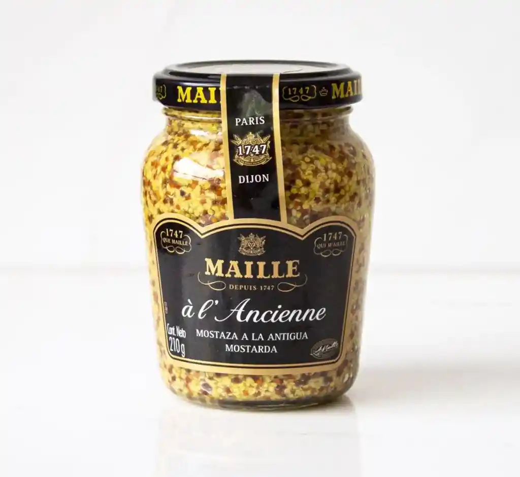 Con la mostaza Maille a la Antigua el sabor adquiere una nueva dimensión. Con sus notas de avellana, semillas de mostaza crujientes, sabores intensos y notas sutiles de vino blanco, la mostaza Maille a la Antigua te transportará al corazón de la región de Borgoña en Francia. Con una textura granulada al estilo de las antiguas mostazas le dará una atractiva apariencia a cualquiera de tus platos.