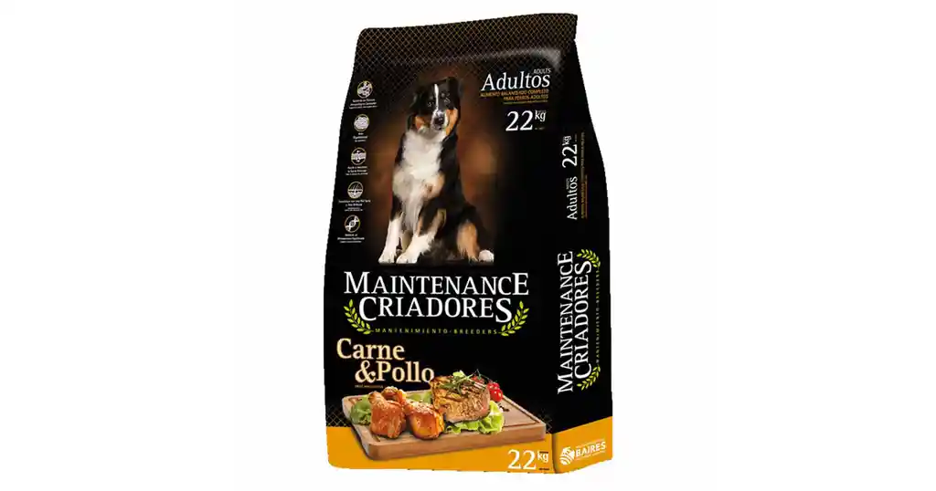 Maintenance Criadores Adulto es un alimento completo y balanceado indicado para perros adultos de todas las razas que aporta todos los nutrientes que su perro necesita para mantenerse saludable y activo. La combinación de carne y pollo, logra de Maintenance Criadores un alimento con proteínas de alto valor biológico, fibras, minerales, vitaminas y ácidos grasos escenciales.