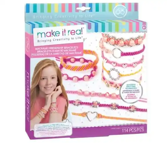 Domina 8 técnicas de anudado en este kit de pulsera de macramé súper moderno. ¡Combine los colores más calientes de esta temporada en hilos y cuentas para armar obras de arte que puede usar! ¡Crea tus propias pulseras de la amistad de macramé para tus amigos o llévalas a una fiesta para hacer pulseras con este kit todo incluido! Cada uno puede diseñarse para reflejar algo especial acerca de tus amigos. Mayores de 8 años. Incluye: 5 colores de hilo de bordar 59 m (64,5 yd) en total, 17 cuentas facetadas, 8 cuentas en forma de corazón, 6 cuentas en forma de flor, 60 cuentas metálicas 3 encantos de enlace, 13 cuentas de colores, 1 bandeja de juego,1 hoja de instrucciones.