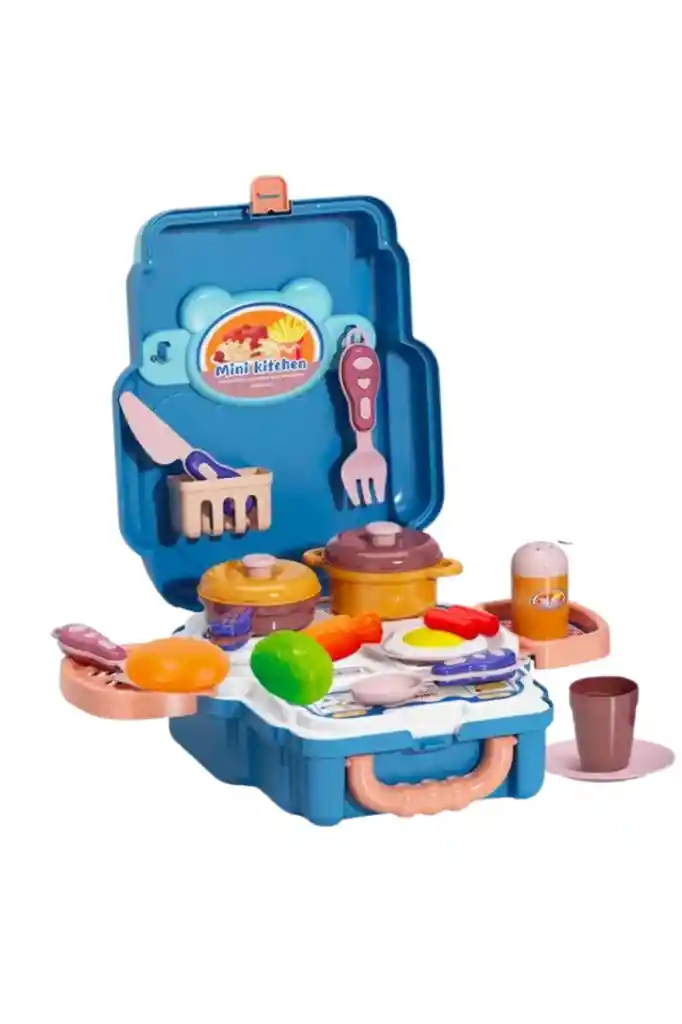 Maleta de Mini Cocina, se transforma en Mesa y en Mochila, por lo que tiene 3 modalidades (maleta, mesa, mochila). Ideal para entretenerse y jugar a cocinar con una serie de utensilios y accesorios que harán muy entretenido sus horas de juego. Promueve el desarrollo de la coordinación Puede ser usada como: Maleta, Mochila, Cocina Contiene: 23 piezas (entre otros 1 cuchillo, 1 tenedor, 1 cuchara, 1 espátula, 1 olla, 1 sartén, 1 vaso, 1 plato, 1 huevo frito, 1 limón, 1 zanahoria, tirantes para mochila, etc.). Stickers para decorar la mini cocina. Edad: + 3 años Dimensiones maleta cerrada: Alto: 25 cm, Ancho: 20 cm, Fondo: 10 cm Peso: 0.8 kg.