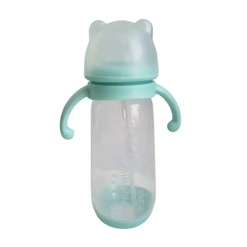 Características: Biberón de autoalimentación para bebé. No es necesario que las madres sostenga el biberón ya que la bombilla regula el flujo. Es portátil, ligero, fácil de llevar y sostener. La botella tiene un mango que facilita el agarre para los bebés Especificaciones: Material: Plástico + Silicona (Libre de BPA). Color: Transparente + Calipso (Según Disponibilidad) Género: Niña / Niño Medida: 420 ML equivalente a 15 Onzas. Contenido: 1 Mamadera con Bombilla.