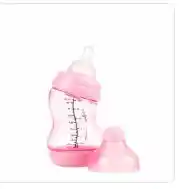 Mamadera rosa claro 200ml La mamadera S de Difrax tiene una forma única en S que asegura que la tetina solo se llena de leche y no de aire.