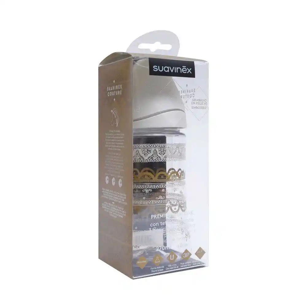 Mamadera Con Tetina Redonda 3 Posiciones + 0 M Blanca 270ml