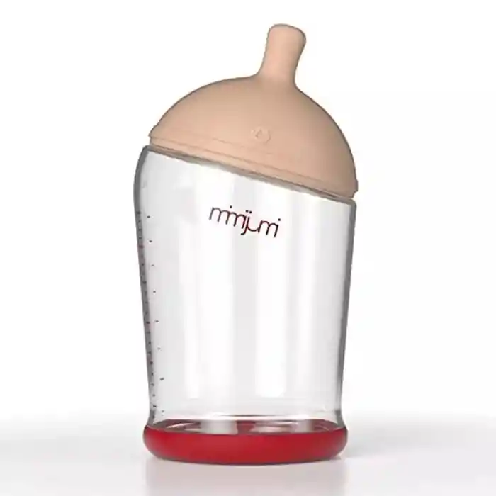Con un diseño y textura pensado desde el punto de vista psicológico por un padre psiquiatra en Estados Unidos, Mimijumi busca minimizar la confusión de tetina-pecho en el bebé. La tetina está originalmente diseñada y patentada en Austria con un orificio que se adapta a la capacidad de presión del bebé liberando el flujo necesario por la fuerza ejercida. La tetina no libera un chorro de leche como las tetinas de mamaderas corrientes del mercado. Por lo que el bebé seguirá realizando el mismo esfuerzo de succión que realiza al tomar del pecho en un tiempo aproximado de 10 a 15 minutos para terminar su leche (similar a tomar desde el pecho) y no 5 minutos como en mamadera común. Todas estas características de diseño, textura y funcionamiento de la tetina han hecho de Mimijumi la mamadera de transición por excelencia en Chile siendo la más recomendada y elegida como una alternativa segura para que madres que necesitan una pausa de amamantamiento por fuerza mayor no terminen con este proceso. Mimijumi les permite alternar pecho y mamadera naturalmente. Los materiales de Mimijumi son anti microbianos. No acumula olores, hongos ni sabores extraños. No necesitas utilizar esterilizadores ni aparatos que puedan estropear la composición a base de moléculas de agua de esta botella. Sólo esteriliza en una olla en agua hirviendo junto con todas las partes luego de limpiar con jabón suave de mamaderas. El lavado a diario puede continuar con jabón suave de biberón. La tetina tiene válvula anticólicos.