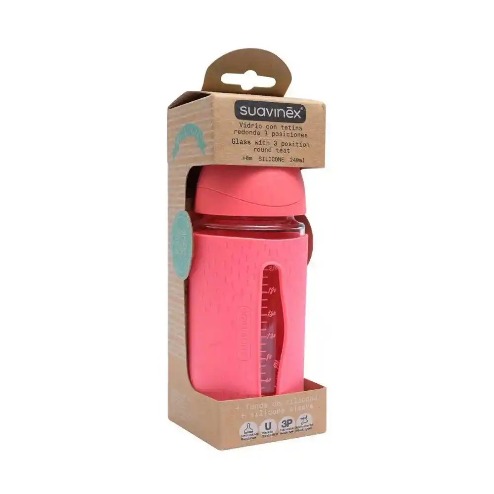 Mamadera Vidrio Con Tetina Redonda 3 Pos/Funda De Silicona
