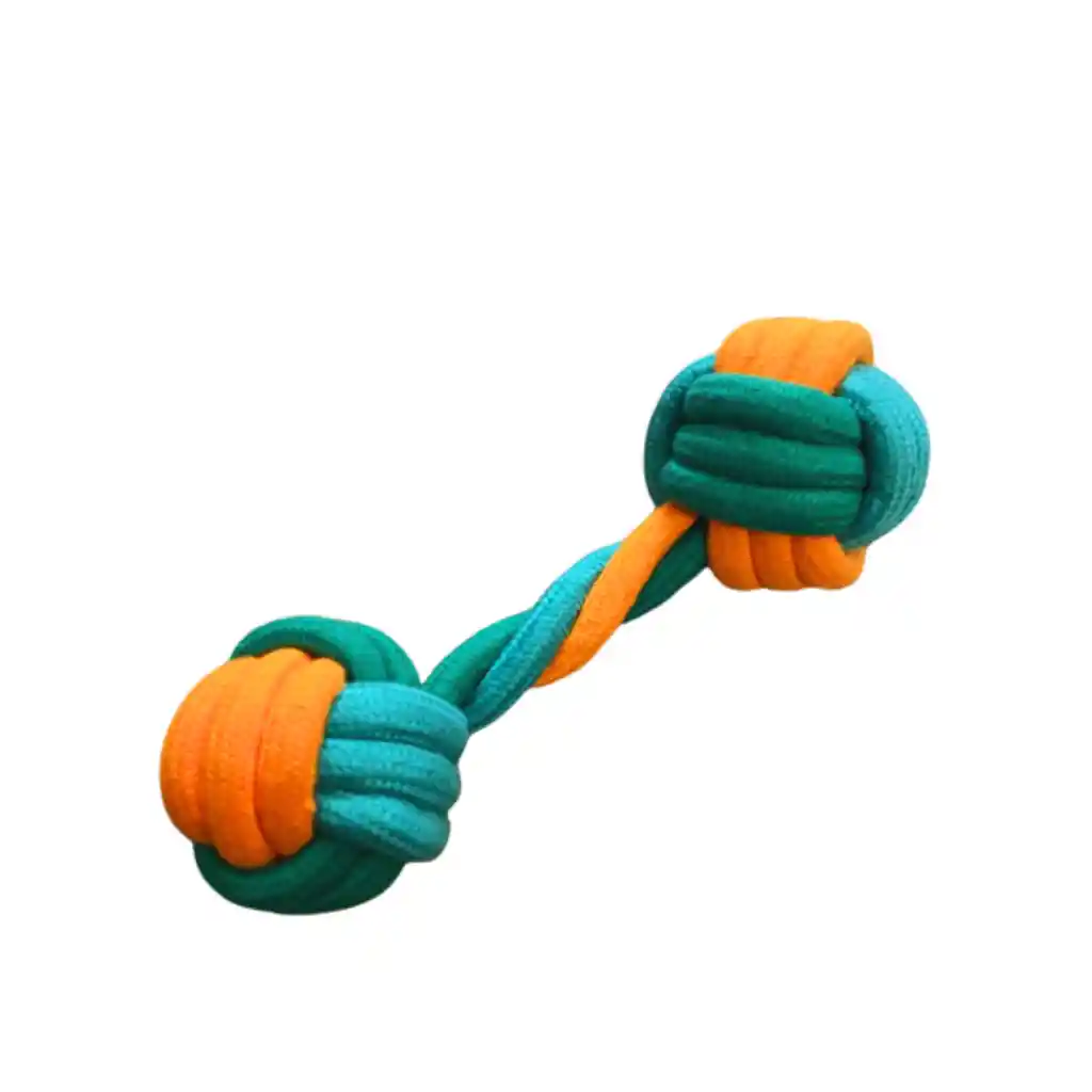 -Juguete tirador con 2 pelotas de soga de algodón. -Permite juegos de búsqueda, tire y afloja o simplemente para que mastique la mascota. -El algodón es resistente y ayuda a mantener los dientes y encías de los perros limpios y saludables. - Dimensión: 20 cm. - Color: Turquesa/Celeste/Anaranjado