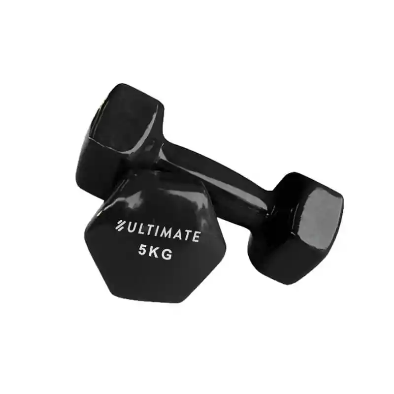 Las mancuernas de vinilo son uno de los complementos más usados por deportistas aficionados y profesionales, ya que son una forma simple y cómoda de fortalecer y tonificar brazos en la comodidad del hogar. A diferencia de las máquinas, las mancuernas ocupan significativamente menos espacio, al mismo tiempo que permiten aumentar el peso de manera progresiva. El set de 2 mancuernas de 5 kg cada una está pensado para tener la mayor comodidad al hacer tus rutinas, pues están hechas de hierro y recubiertas en vinilo sintético de alta calidad muy agradable al tacto, ideales para tener el mejor agarre durante tus repeticiones sin dejar de lado la resistencia y la durabilidad. Al tener una forma ligeramente angular son más cómodas al depositarlas sobre las superficies evitando que se muevan de su lugar y permitiendo aplicar ciertas variaciones de ejercicios. Una vez terminado el entrenamiento podrás limpiarlas, guardarlas y transportarlas sin complicaciones, pues son lavables y pequeñas. Además, son sumamente resistentes y durables, por lo que te acompañarán durante largo tiempo. Podrás ocuparlas para tonificar y fortalecer brazos, para rutinas aeróbicas, crossfit y más. Información adicional: Dos mancuernas de 5 kg cada una. Interior de hierro fundido y exterior de vinilo sintético.