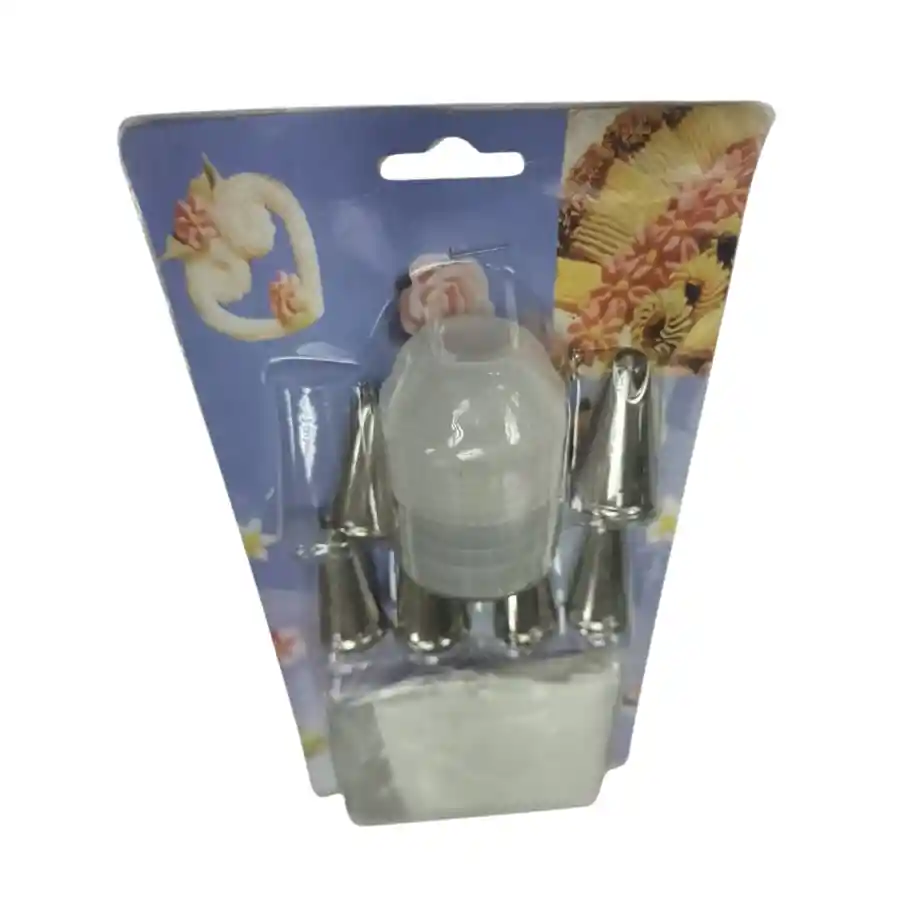 Set de boquillas con manga para cremas, reposteria, pasteleria. Incluye 8 piezas, 6 boquillas metalicas de 4x2cm cada una, 1 boquilla plastica grande de 3x6cm de diametro.