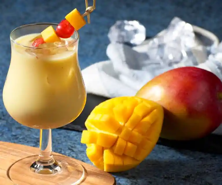 Ron Bacardí, bebida de coco, pulpa natural de mango, hielos