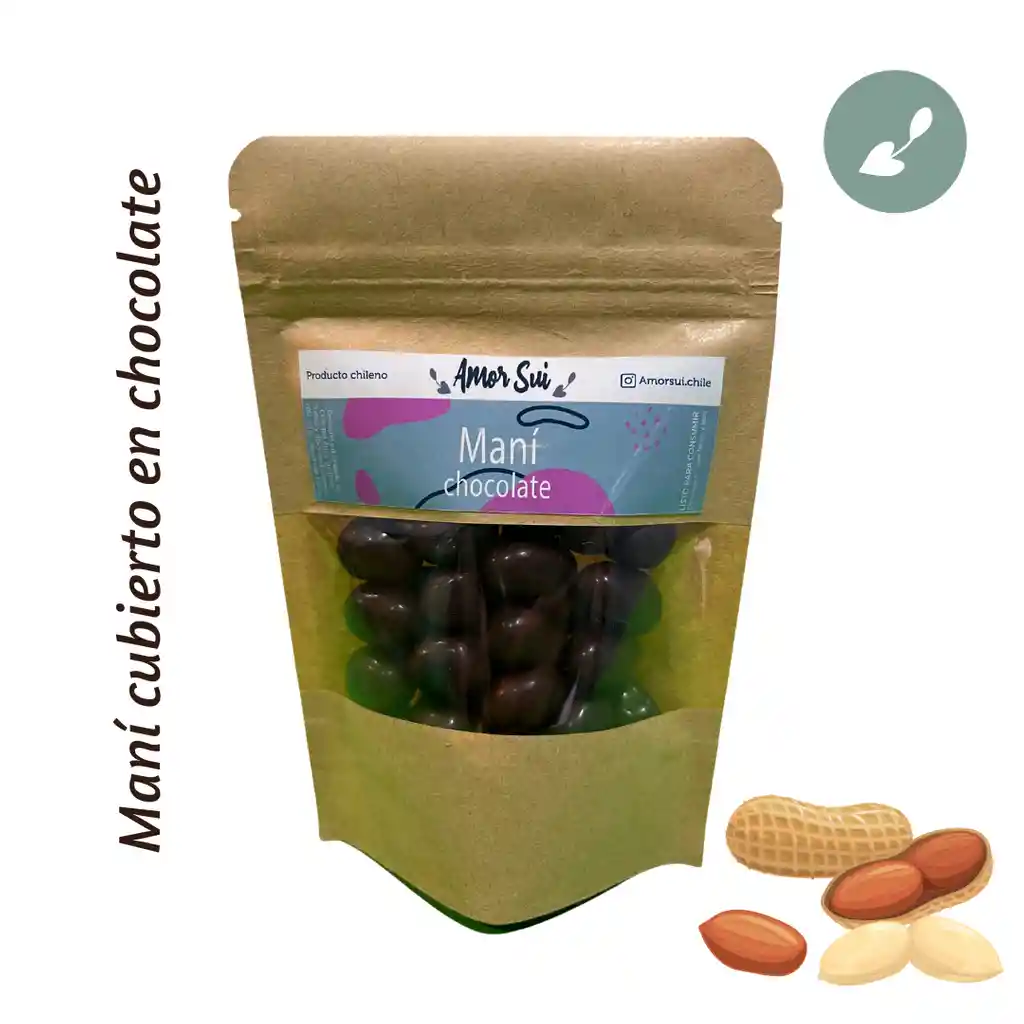 ¿Sabías que el Maní es una legumbre? Hoy puedes disfrutar de sus beneficios, en su versión cubiertos de delicioso chocolate. Contiene 80g. Su envase es en doypack con cierre. Ideal para consumir en snack, colaciones, acompañar con helados, postres y/o tablas para compartir.