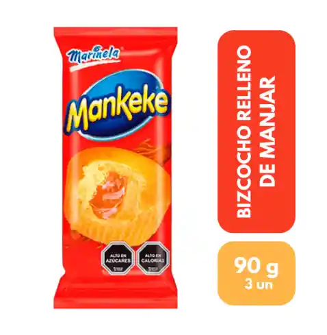 El Mankeke de 90g es una presentación de ahorro o "pack escolar" que contiene 3 unidades del clásico bizcocho individual (de 30g cada uno).
