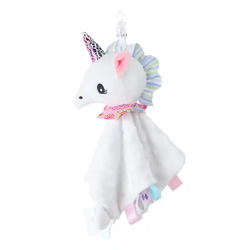 Especificaciones: Material: Felpa + tela + plastico Diseño: Unicornio Contenido: 1 Peluche Sonajero Permite a los pequeños desarrollar la estimulación sensorial, auditiva y visual Incluye mordedor. Tocará diversas texturas y se divertirá mirando sus entretenidos colores Entrenamiento de la capacidad de agarre de la mano de tu bebé. Al agitar llamar la atención de su bebé y ayudar a calmar el estado de ánimo