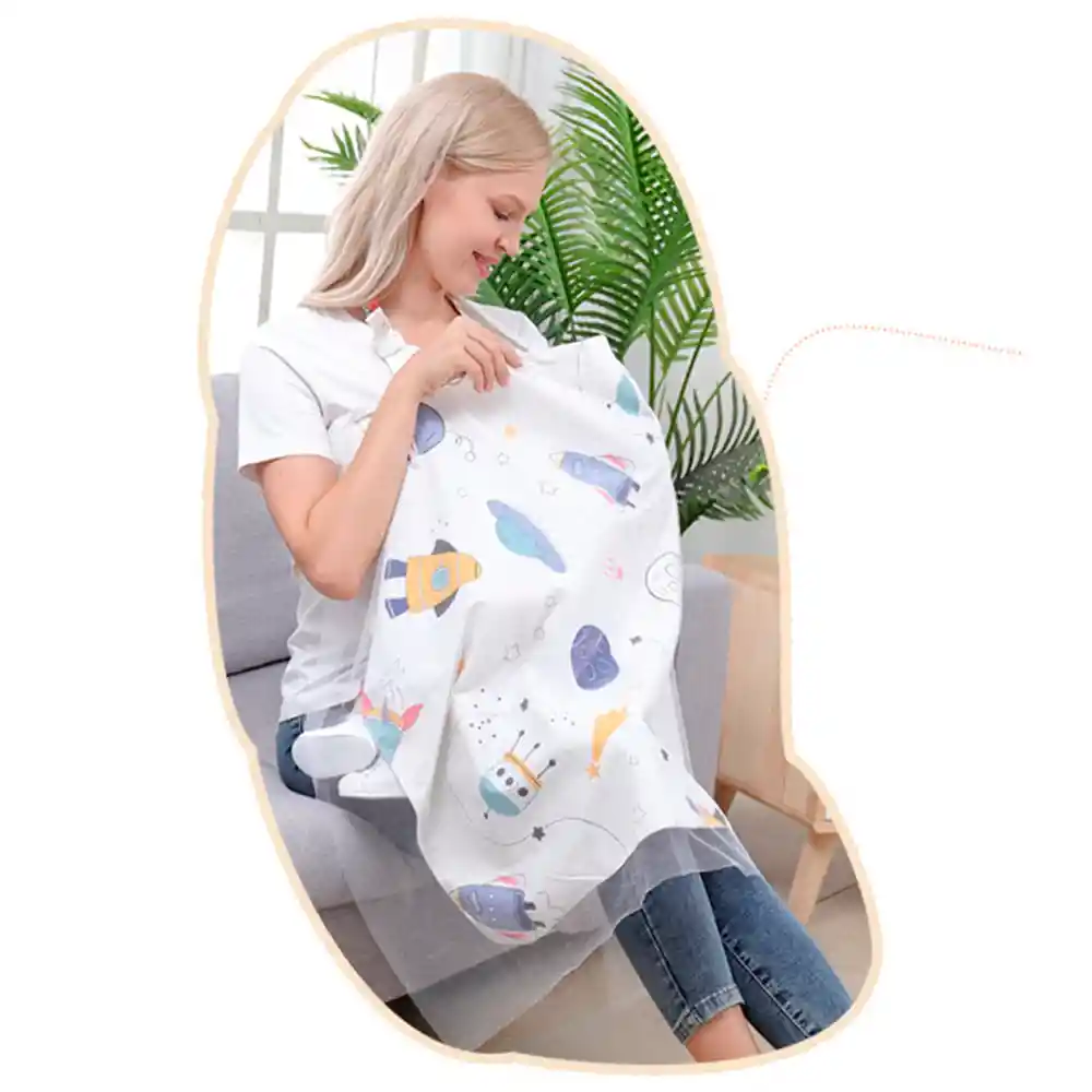 Material: Tela de algodón + Mosquitera Medida: 100 cm x 90 cm (aprox) Diseño: Cohete Contiene: 01 Manta de Lactancia. En el cuello se puede ajustar en longitud según sus propias necesidades. El escote abierto rígido permite a la madre mantener el contacto visual con su bebe y el mismo garantiza la circulación del aire. También puedes utilizarla como manta para mantener a su bebé caliente Puedes aprovecharla como funda de asiento de cochecito Es multi uso pudiendo también usar como manta para el bebe, mosquitero de cochesito o para disminuir la iluminación en el mismo