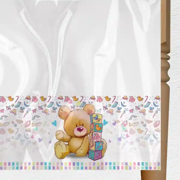 Mantel Baby Shower Osito. Mide 130x170 cm aproximadamente.