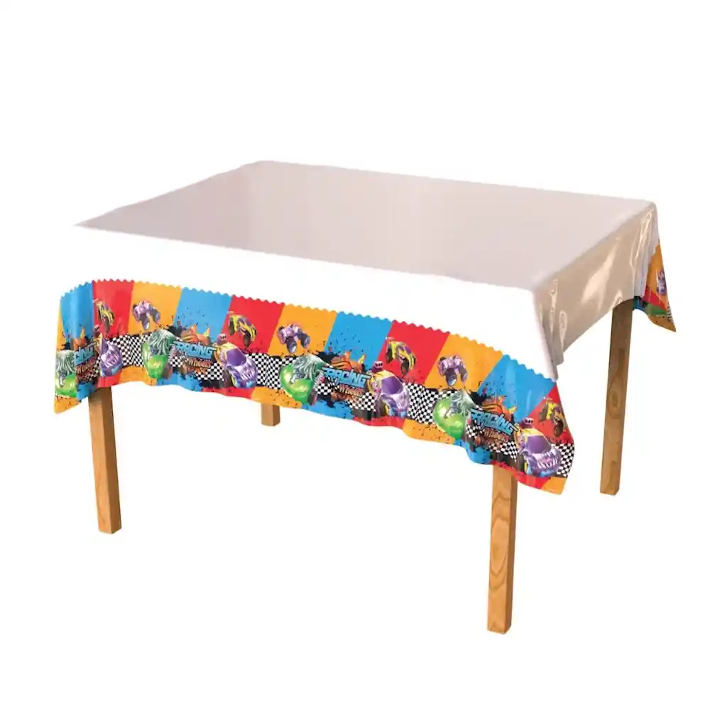 Tipo de producto: Mantel decorativo para fiesta Tema: Racing Wheels Medidas: 130 x 170 cm Material: Plástico Uso recomendado: Decoración y protección de mesa en cumpleaños y fiestas temáticas infantiles