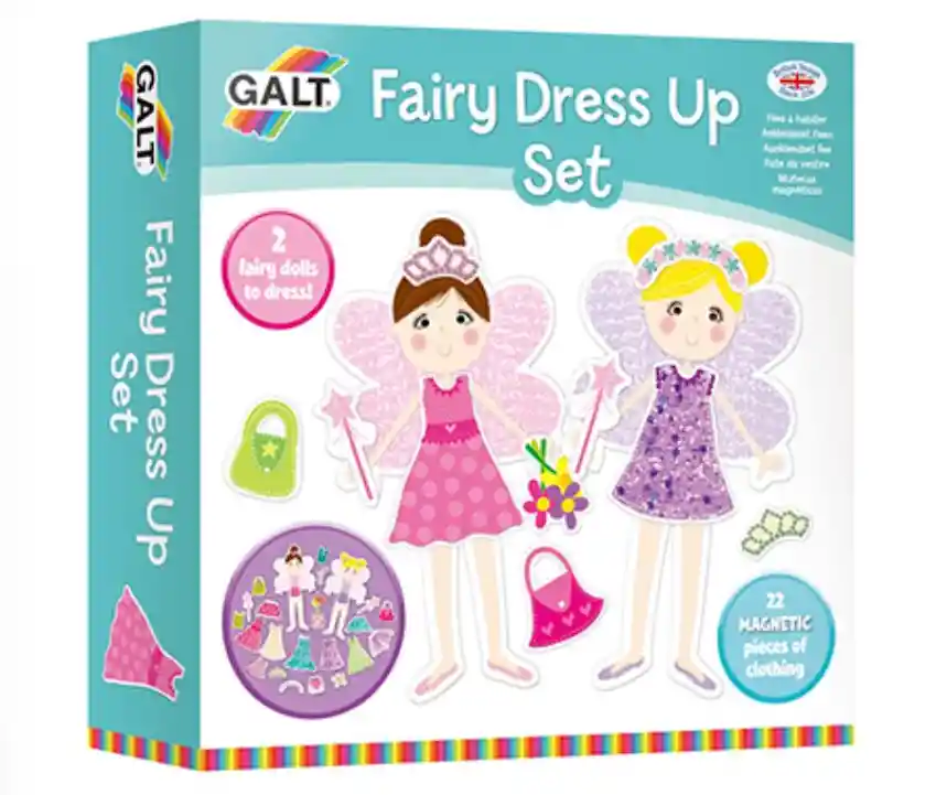 Divertida actividad creativa para diseñar los más hermosos atuendos para hadas. Incluye 2 hadas y 22 atuendos magnéticos de ropa y accesorios. Divertido juego para estimular la creatividad y la motricidad fina de los más pequeños y pequeñas.