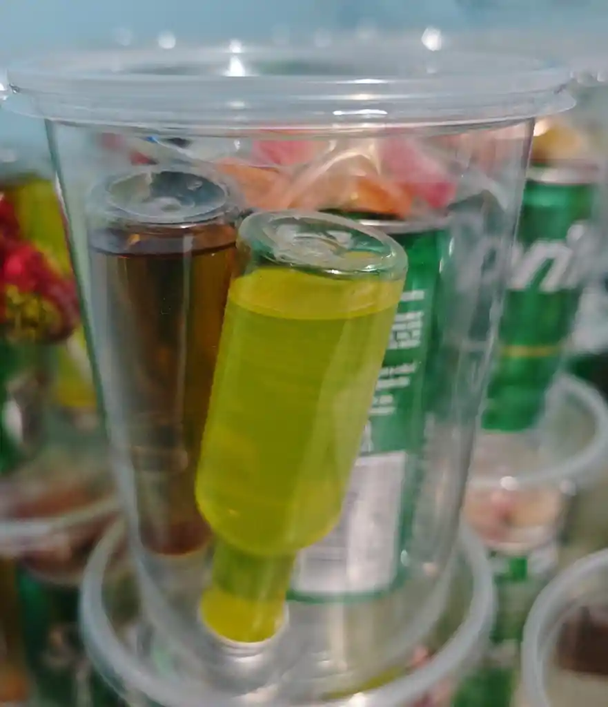 1 Lata de sprit 220ml 1 botella de whisky de manzana 50ml 1 botella de spritz de limonatte 50ml Dulces
