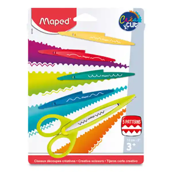 Incluye: Tijera 1 Und + Juego de Cuchillas 5 Und. Cortes Creativos 5 en 1 Transforma tu Creatividad Con Diversión y Versatilidad Gracias al Diseño Único de Las Nuevas Tijeras Maped Cortes Creativos 5 en 1 Con Cuchillas de Fibra de Vidrio Intercambiables Con Diferentes Formas en el Corte Para Darle un Toque Personal a Todas Tus Decoraciones. Su Estructura Tiene un Bot Para Cambiar la Cuchilla de Manera Segura Practica y Sencilla. Podrá Convertir Una Hoja de Papel o Una Manualidad en Una Obra de Arte Escolar Con su Corte Del Grado y Preciso. Sus Colores Increíbles y Marcas Integradas en el Cuerpo te Ayudaran a Identificar Cada Cuchilla Para Llevarlas Contigo Todos Los Días. Los Divertidos Cortes Para Hacer de Tus Tareas Algo Único. Tijeras Maped Crea Cut Modelo: 601006 Color: Multicolor No Disponible Especificaciones: Cuchillas Pláticas / Corte Preciso y Del Grado / Cuchillas Intercambiables / Estructura Con Bot de Liberación / Mango de Plástico / Cuerpo Con Marcas Conforme al Tipo de Corte / Acabado en Colores Brillantes.