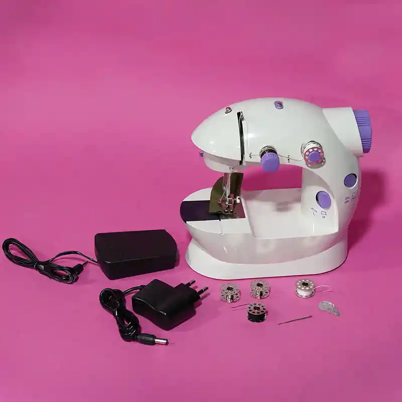 Mini maquina de coser ofrece hilos dobles con perfecto control de la puntada, con enhebrador, hilos y agujas. Ademas de ser de una excelente durabilidad para todo tipo de trabajo requerido. 4 en 1 mini máquina de coser compacta y portátil, fácil de operar, duradero, práctico y a muy buen precio. Ligero y con un buen espacio para poder guiar la tela de costura a mano engranajes de aleación de energía en el interior para garantizar un uso mucho tiempo. Carrete grande se puede utilizar con el dispositivo de rebobinado para facilitar el cambio de bobina inferior. Con el pedal de control de pie fácil. operación AC. un adaptador (adaptador incluido). Es ideal para la reparaciónes rápidas La máquina de coser más compacta y ligera del mercad. Características: Modelo Maquina Coser Pedal Simple de usar Puedes coser todo tipo de telas Fácil de transportar Utiliza poco espacio Funciona a corriente eléctrica con un adaptador de CC 6V 800 mA o con 4 pilas AA ( NO INCLUIDAS ) Práctica, compacta y liviana