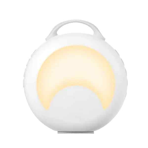 El ruido blanco les permite a los bebés, niños e incluso adultos a dormir mejor ya que cancelan el ruído ambiente, con la emisión de otro sonido suave pero continuo que se mantiene siempre en la misma frecuencia. Esta máquina reproduce este tipo de sonidos para estimular la calma y placidez en el sueño del bebé. Características: 30 sonidos calmantes integrados -- canciones de cuna, grillos, olas del mar, reloj, pájaros, latidos de corazón, trenes, ventilador, ruidos blancos, entre otros. Estos sonidos hacen que los más pequeños se sientan seguros y relajados, facilitándoles dormir. Temporizador conveniente y función volumen ajustable: Puede configurar opciones de temporizador entre 30/60/90min para ayudar a ahorrar energía; El diseño de volumen ajustable le permite crear un mejor ambiente de sueño para su bebé. Luz nocturna y luz roja. Función de grabación, puedes personalizar tu ruido blanco por el qye quieran con la función para grabar. La función de memoria permite retomar el sonido utilizado en el último uso. También tiene un seguro de niños incorporado. Batería recargable incorporada: Batería integrada de 1500mAh que se puede recargar con el cable USB incluido, carga completa de 3.5 horas y dura 20 horas funcionando, no hay necesidad de preocuparse por problemas de apagado.Compacto y portátil: Compacto y ligero, muy conveniente de llevar, ideal para uso en viajes o paseos; Viene con un colgador que permite enganchar la máquina de ruido blanco en el coche del bebé.