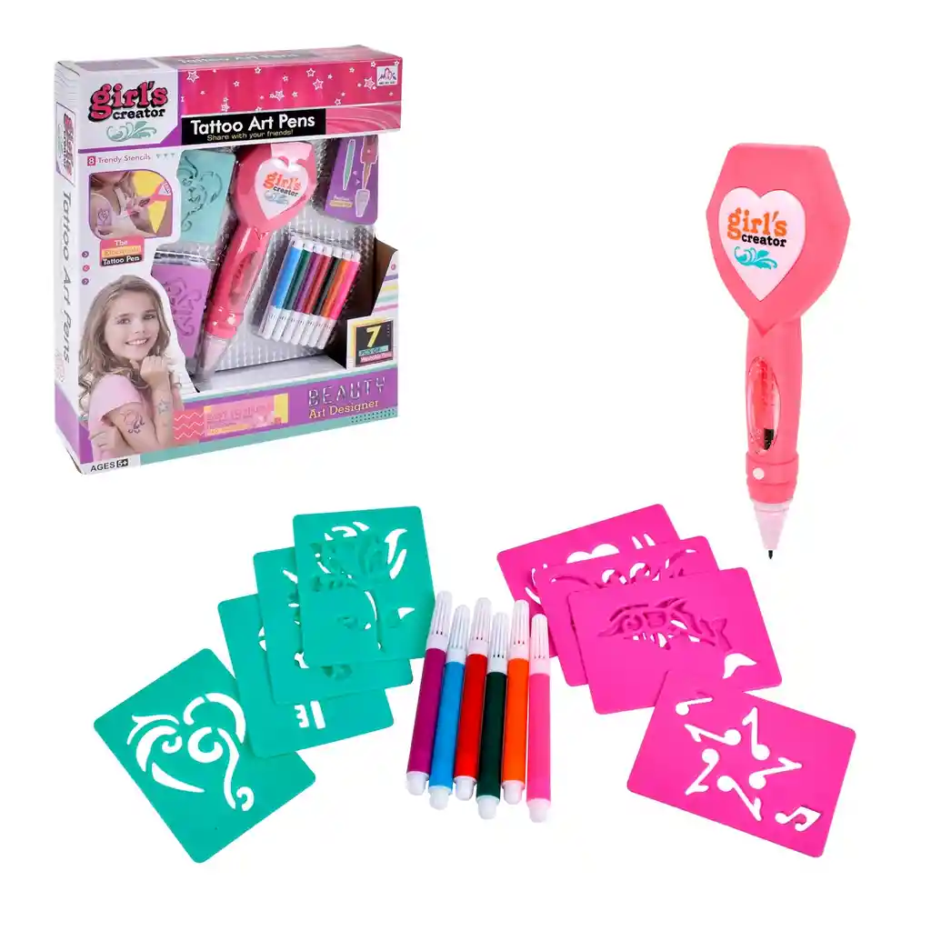 Con la Máquina para Hacer Tatuajes con Accesorios, las niñas podrán disfrutar de momentos muy entretenidos mientras diseñan dibujos creativos sobre su piel. Este set es perfecto para liberar su imaginación y creatividad, permitiéndoles seguir el diseño de las plantillas incluidas o inventar sus propios patrones. La máquina para tatuajes de juguete viene con 8 plantillas y 7 marcadores, ofreciendo una variedad de diseños y una amplia gama de colores, tamaños y formas para combinar. Además de proporcionar diversión, este juguete desarrolla habilidades creativas, destrezas manuales y la imaginación, convirtiéndolo en un regalo ideal para las niñas que sueñan e inventan. La máquina requiere 2 pilas AAA (no incluidas) para funcionar. ¡Anima a las pequeñas a explorar su lado artístico con esta increíble máquina para hacer tatuajes y accesorios!