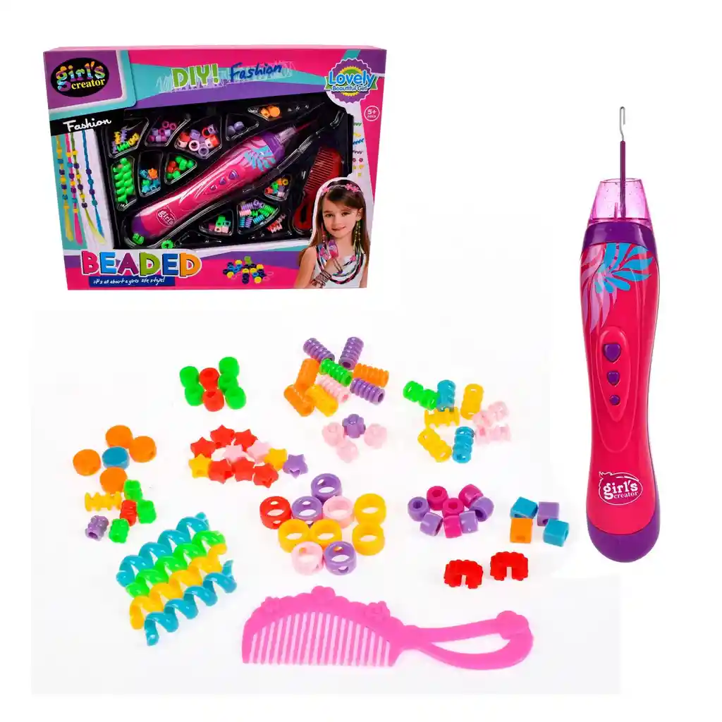 La máquina para Poner Mostacillas en el Pelo, es el sueño de cualquier fashionista. Esta es una herramienta de estilo le permite añadir todo el brillo a la vida diaria de las niñas creando sus propios estilos llamativos combinándolos en un divertido patrón de colores, tamaños y formas. Es totalmente seguro y muy fácil de usar. Este es un juguete que desarrolla las habilidades creativas, la destreza y la imaginación, lo cual lo hace ideal para regalar, a esas niñas creadoras de sueños e ideas. (Las mostacillas para el cabello se venden por separado)