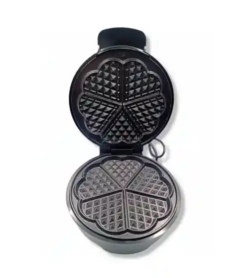 Waflera de teflón 5 corazones ESPECIFICACIONES: + Voltaje de entrada: 220V - 50Hz + Potencia: 1000W + Uso: Máquina para hacer waffles + Material: Hierro fundido de alta calidad + Color: Negro