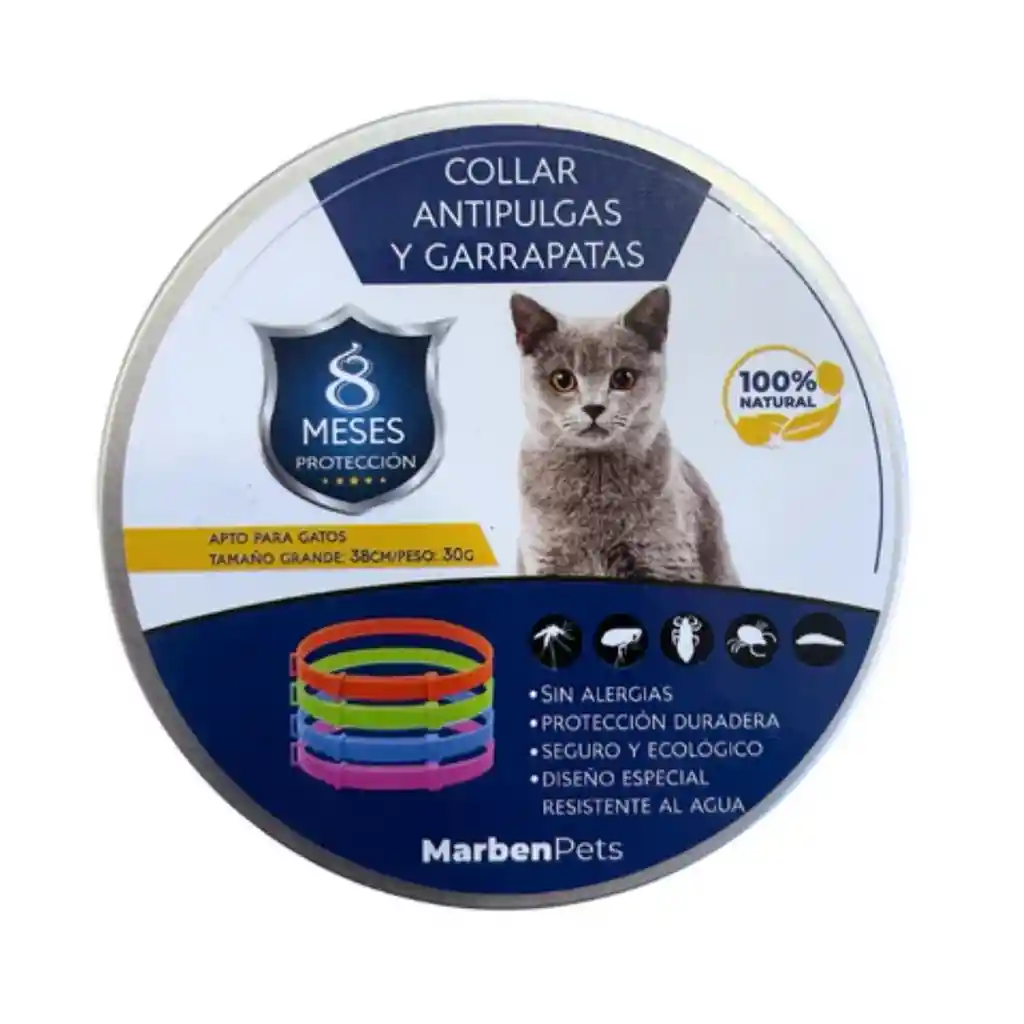 COLLAR ANTIPULGAS Y GARRAPATAS PARA GATO. 8 MESES DE PROTECCION. Eficaz Contra Pulgas y Garrapatas: Este collar está diseñado especialmente para proteger a los gatos de pulgas, garrapatas y otros parásitos externos El collar es ajustable para que se adapte perfectamente al cuello de tu gato, asegurando que no quede ni demasiado apretado ni flojo, lo que proporciona una mayor comodidad.