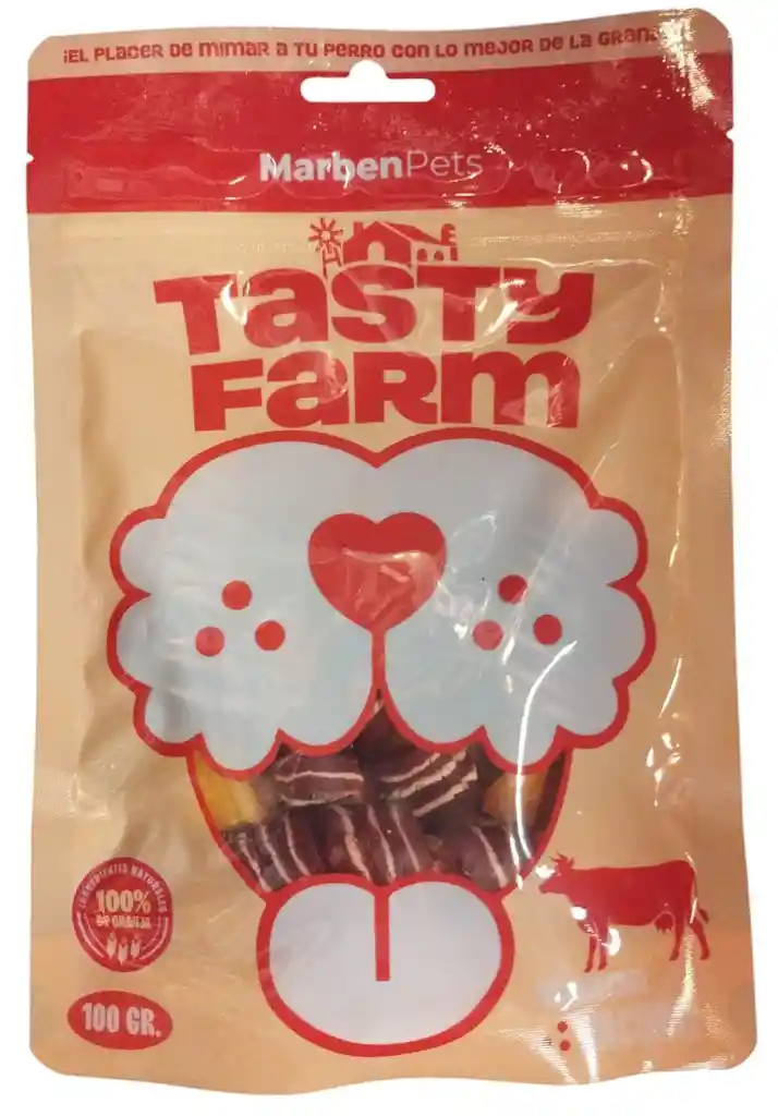 Tasty Farm trae el auténtico sabor de la granja a la mesa de tu perro con su nueva línea de snacks naturales. El Vacuno es una fuente natural de hierro y vitaminas del complejo B, promueve la salud general y fortalece los huesos y músculos de tu perro.