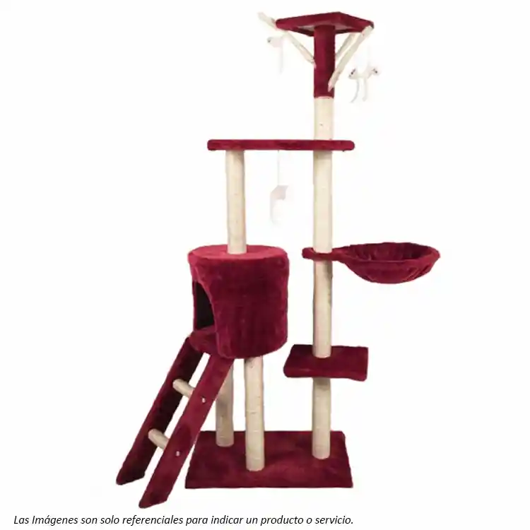Torre en seis niveles de interacción para tu gato. Una casita refugio redonda cubierta de Felpa con escalera. Una Hamaca de anillo fija y firme en Felpa. Una plataforma central y una pequeña superior con juguetes colgantes. Pilares de Sisal para que puedan rascar sin dañar otras superficies. Producto para armar. Disponible en color Beige y Rojo Medidas: 50 X 35 X 138 cm.