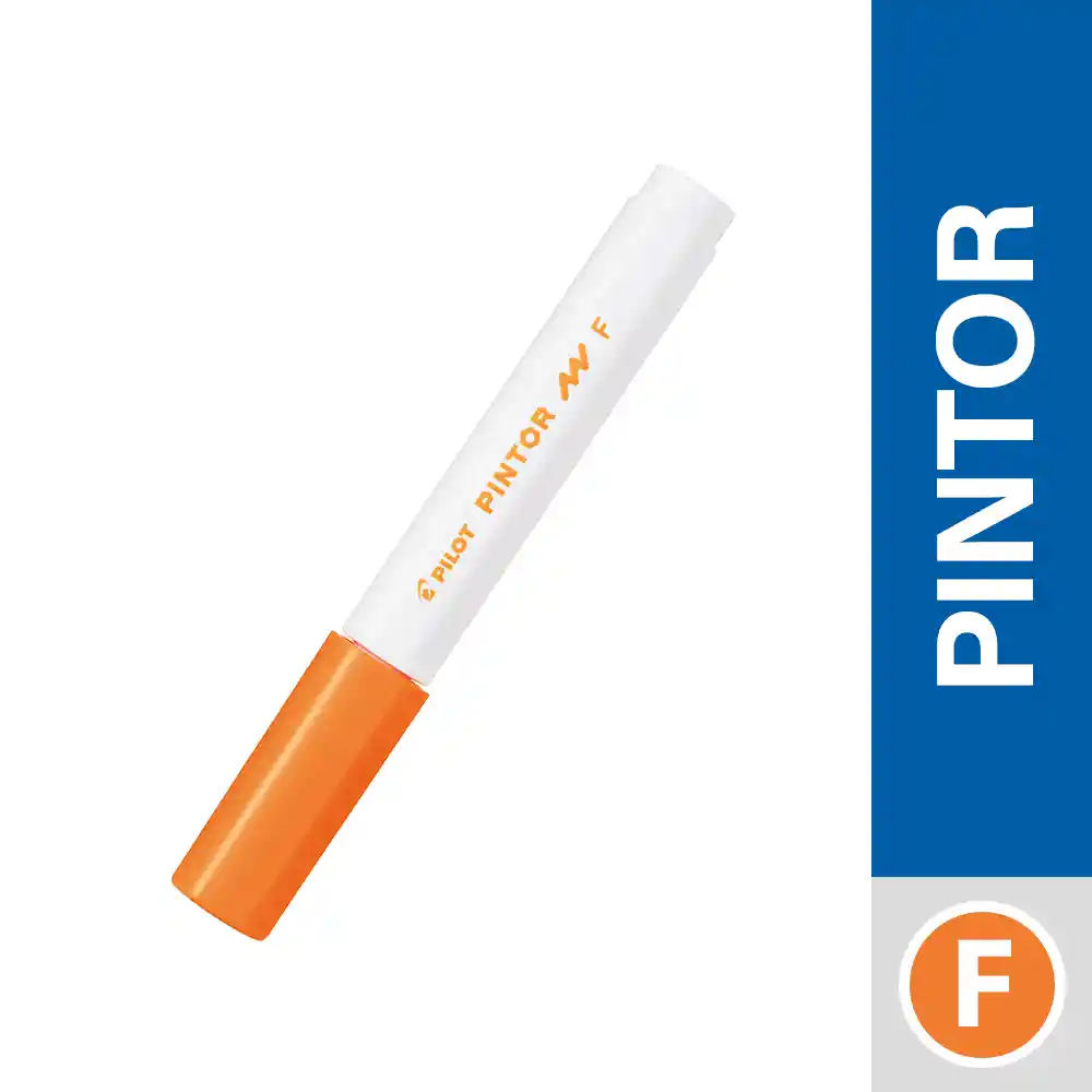 Marcador de tinta pigmentada a base de agua punta fina, color naranjo. Permite dibujar en todo tipo de superficies, incluso oscuras. Permanente en superficies porosa como madera, papel, cartón, tela o piedras. En superficies lisas se recomienda fijar con un barniz transparente o bien sometiendo a altas temperaturas. Secado rápido. Desechable.