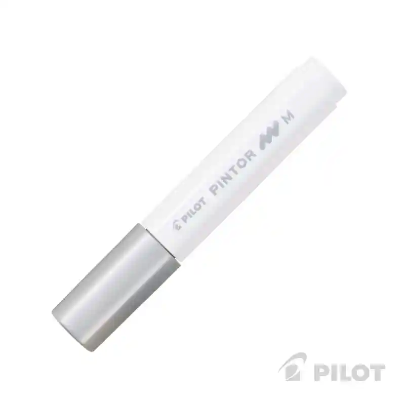 Marcador de tinta pigmentada a base de agua punta media, color plateado. Permite dibujar en todo tipo de superficies, incluso oscuras. Permanente en superficies porosa como madera, papel, cartón, tela o piedras. En superficies lisas se recomienda fijar con un barniz transparente o bien sometiendo a altas temperaturas. Secado rápido. Desechable. Contiene: Un marcador color plateado punta media.